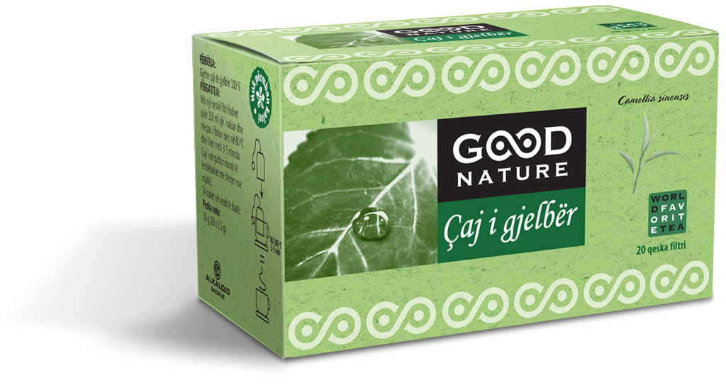 Çdo pako përmban 20 qeska filtri me nga 1,5 g gjethe çaji të gjelbër.